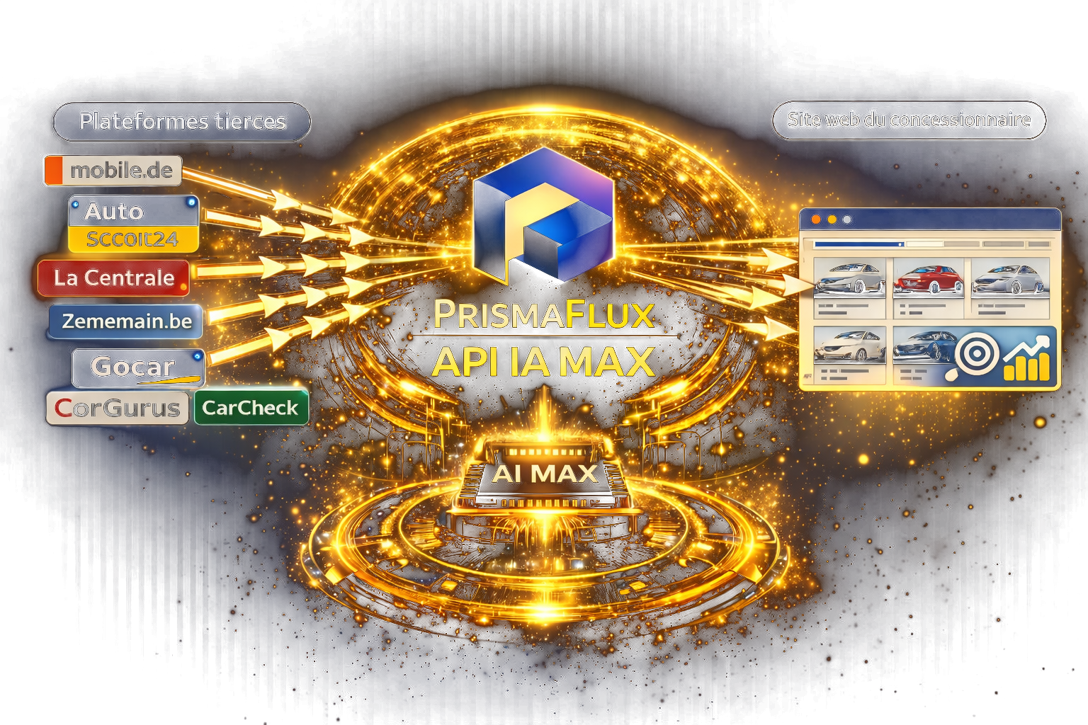 PrismaFlux API™ est une technologie qui permet le chargement de votre catalogue de véhicules depuis vos plateformes tierces vers votre site web. Automatisation de la création de fiches véhicules sous la charte graphique du concessionnaire.